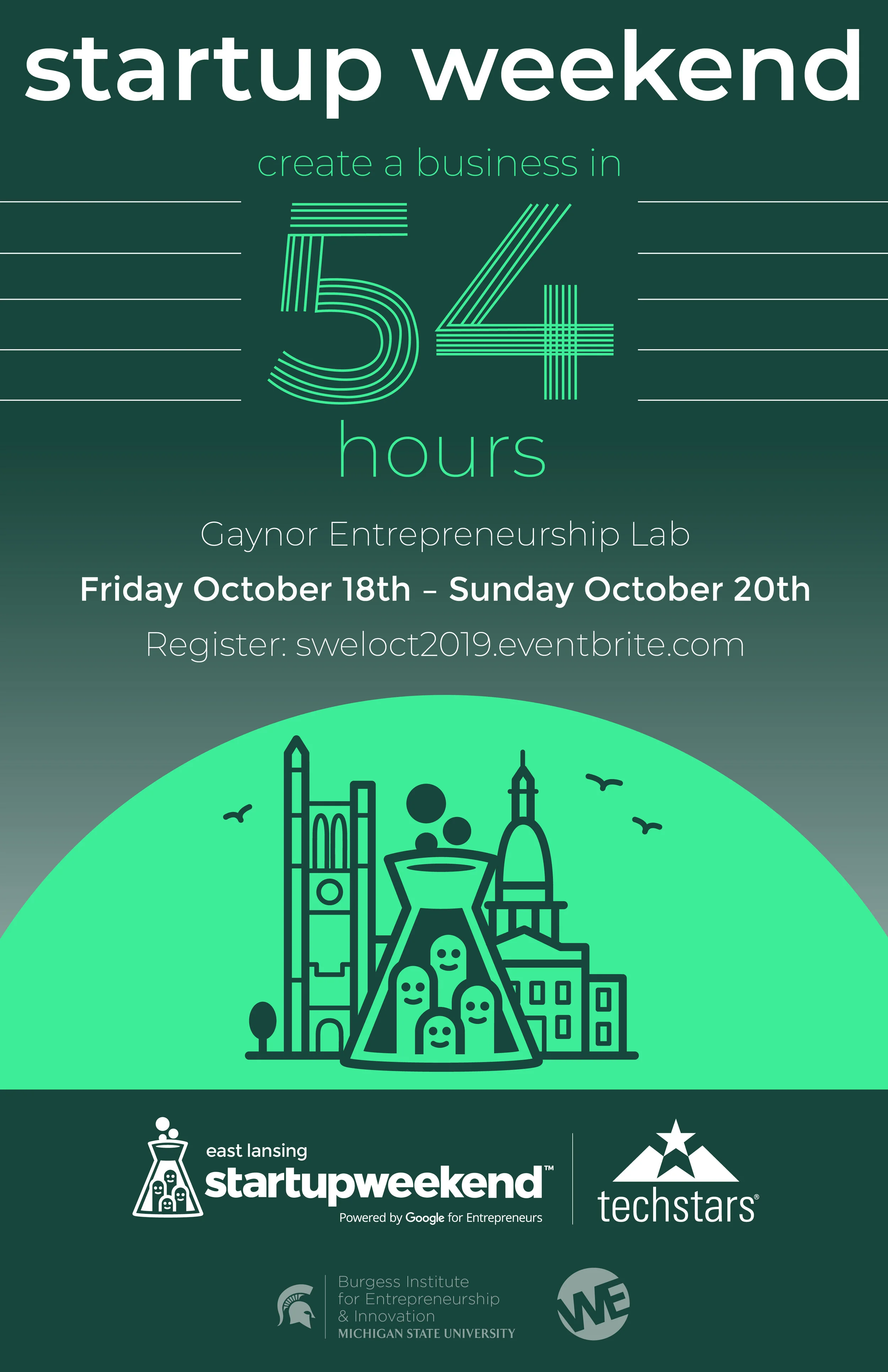 For our Fall 2019 Startup Weekend event I was tasked with creating a promotional poster, social media graphics and an event shirt.